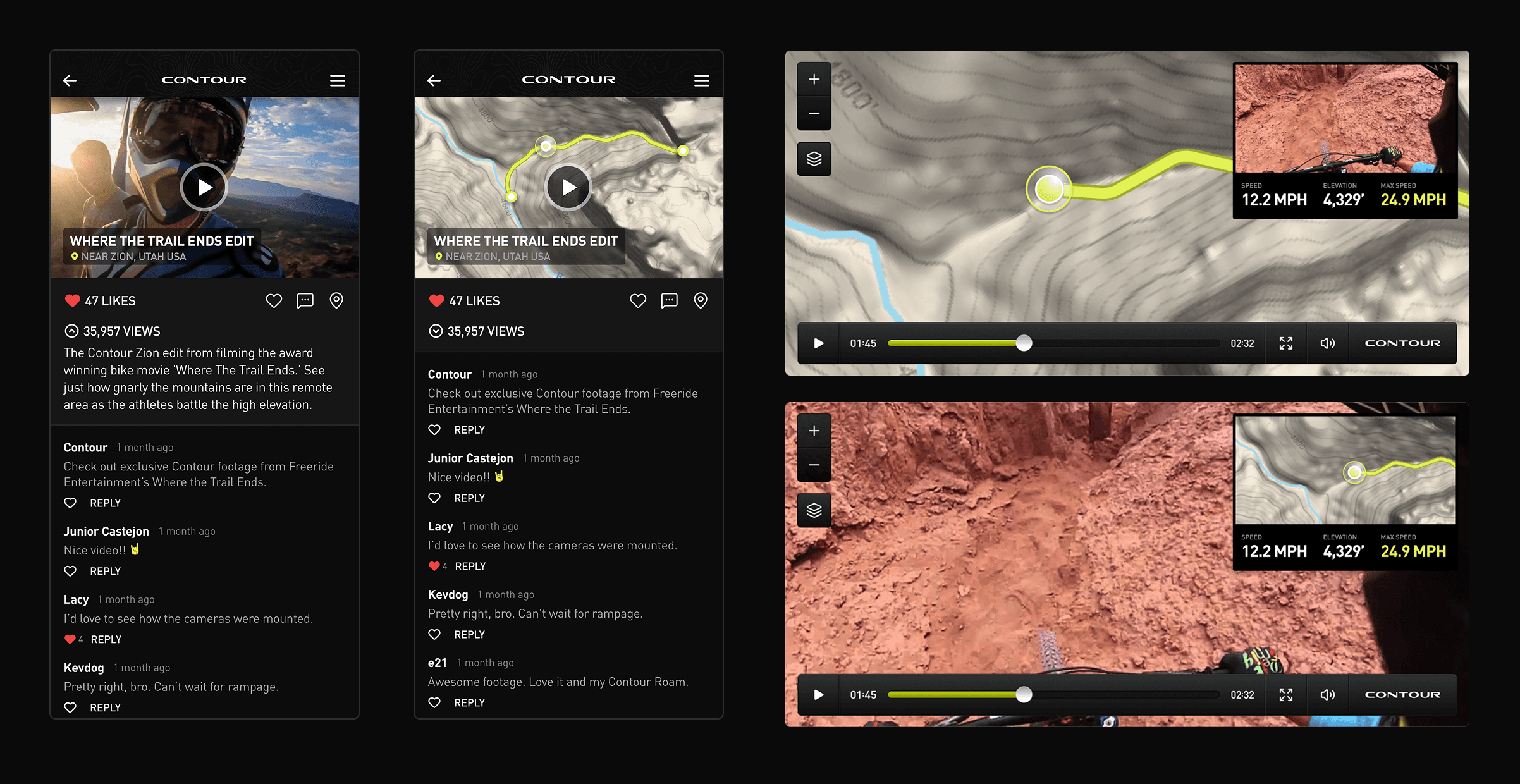 Our goal was to create a cohesive brand experience that felt consistent everywhere a user interacted with Contour. The visual language was designed to be bold, energetic, and clear, reflecting the action sports brand. It established a consistent use of typography, color, and motion that worked across the website, mobile apps, and even packaging.